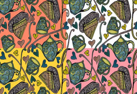 Digital repeat pattern design developed using hand drawn artwork and pastel colorways