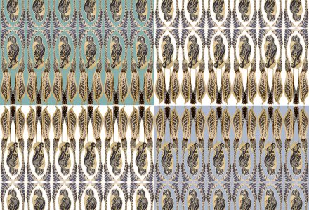 Hand drawn and painted motif developed into a digital repeat pattern design